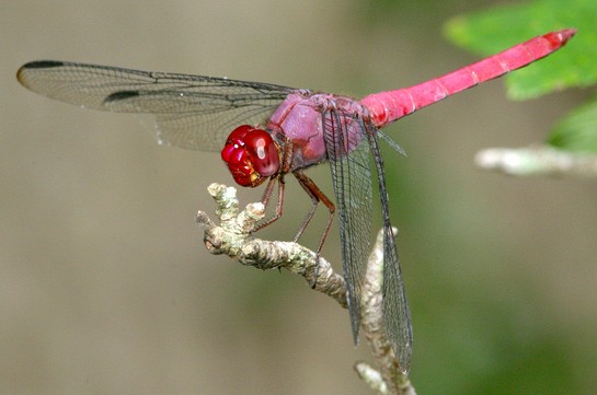 ) Skimmers each lack lateral thoracic markings and have much stockier bodies. Red-tailed Pennant (Brachymesia furcata