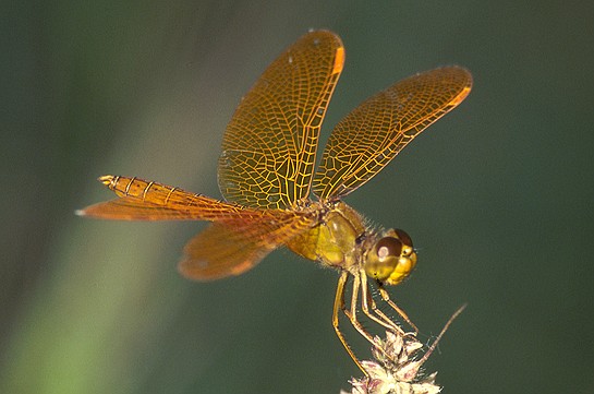 ) has dark brown stripes dorsally on the abdomen and Eastern Amberwing (P. tenera