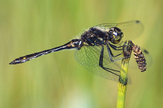This is the only dark meadowhawk in the region and the only one with a black face (in older males). Female Seaside Dragonlet (Erythrodiplax berenice
