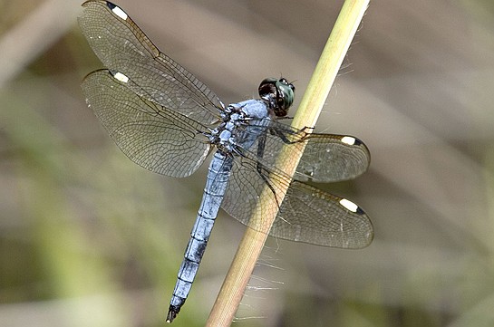 Comanche Skimmer is larger and has a white face. Yellow-sided Skimmer (L. flavida ) lacks a distinct bicolored pterostigma and the wingtips may be brown or clear. Slaty Skimmer (L. incesta ) is much larger and lacks a bicolored pterostigma. Bar-winged Skimmer (L. axilena ) has dark markings on the anterior edge of the wings, is larger and lacks a bicolored pterostigma.