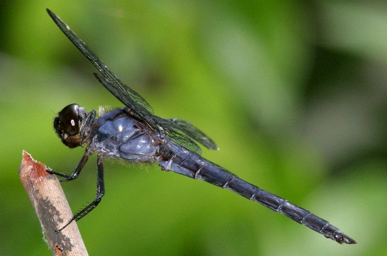 ) generally has amber along the front margin of the wings. Great Blue Skimmer (L. vibrans