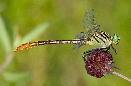 This species just reaches the easternmost edge of the region, where it is uncommon. It is slightly larger than the other two species in the genus. Its face is green with a prominent dark cross-stripe. The top of the frons is yellowish and the vertex black. The thorax is green with brown antehumeral and humeral stripes widely separated by a green stripe at least as wide as each of them. The mid- and third lateral thoracic stripes are both present and well-developed. The wings have yellowish-brown costa. The abdomen is greenish with an u