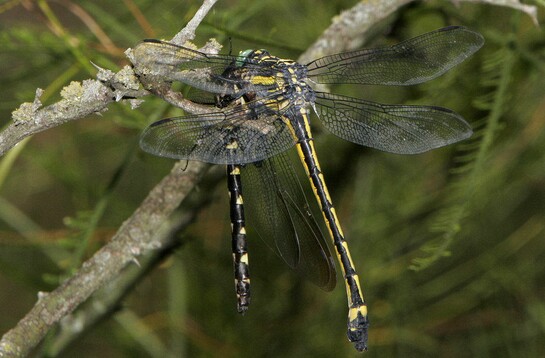 Though this species is unlikely to be confused with other clubtails, it is similar to some spiketails (Cordulegaster). Spiketails however, have eyes touching at least partially on top of the head.
