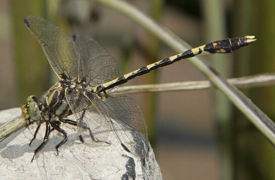 Gray Sanddragon is larger and lacks two complete lateral thoracic stripes. Eastern Ringtail (Erpetogomphus designatus ) is similar but the caudal appendages are both brown, not with yellow cerci and a black epiproct as in Common Sanddragon.