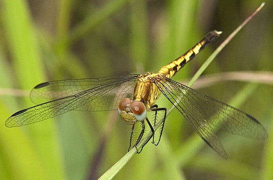 ) is larger with brown stripes basally in both wings. Similar meadowhawks (Sympetrum