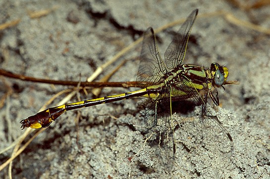 ) is larger and darker. It also has a larger pale yellow spot laterally on segment 8. Cobra Clubtail (G. vastus