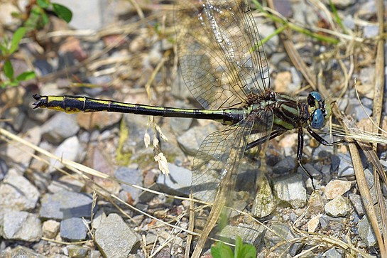 ) is larger and more brightly colored. In Ashy Clubtail (G. lividus