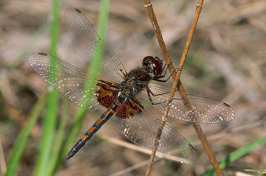 This is a dainty species that behaves similarly to the other small pennants discussed previously. It may be seen perched high on tall grasses and stems when foraging in open fields. It is more common in the eastern portion of its range. Females lay eggs accompanied by males, along the shorelines of ponds, lakes and marshes.